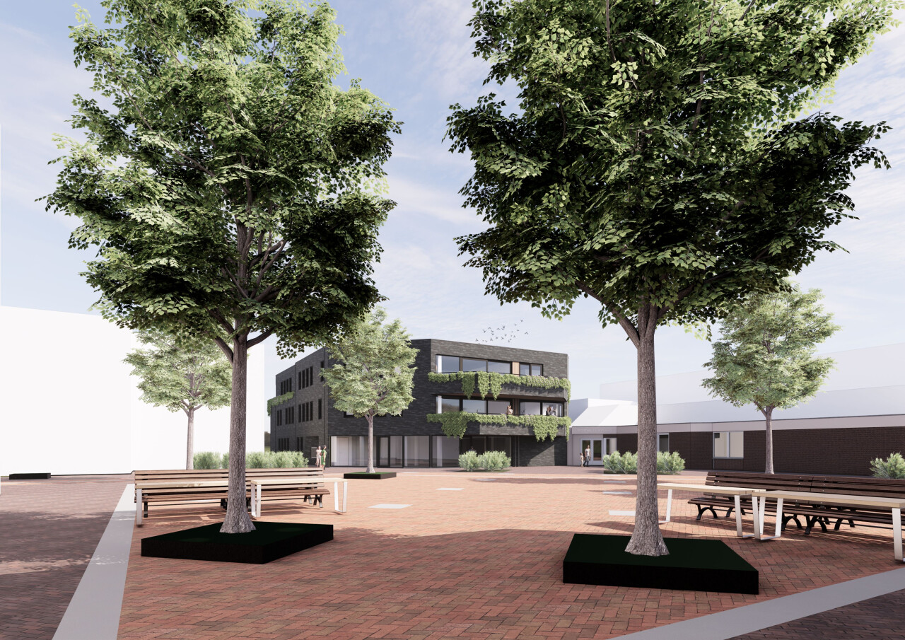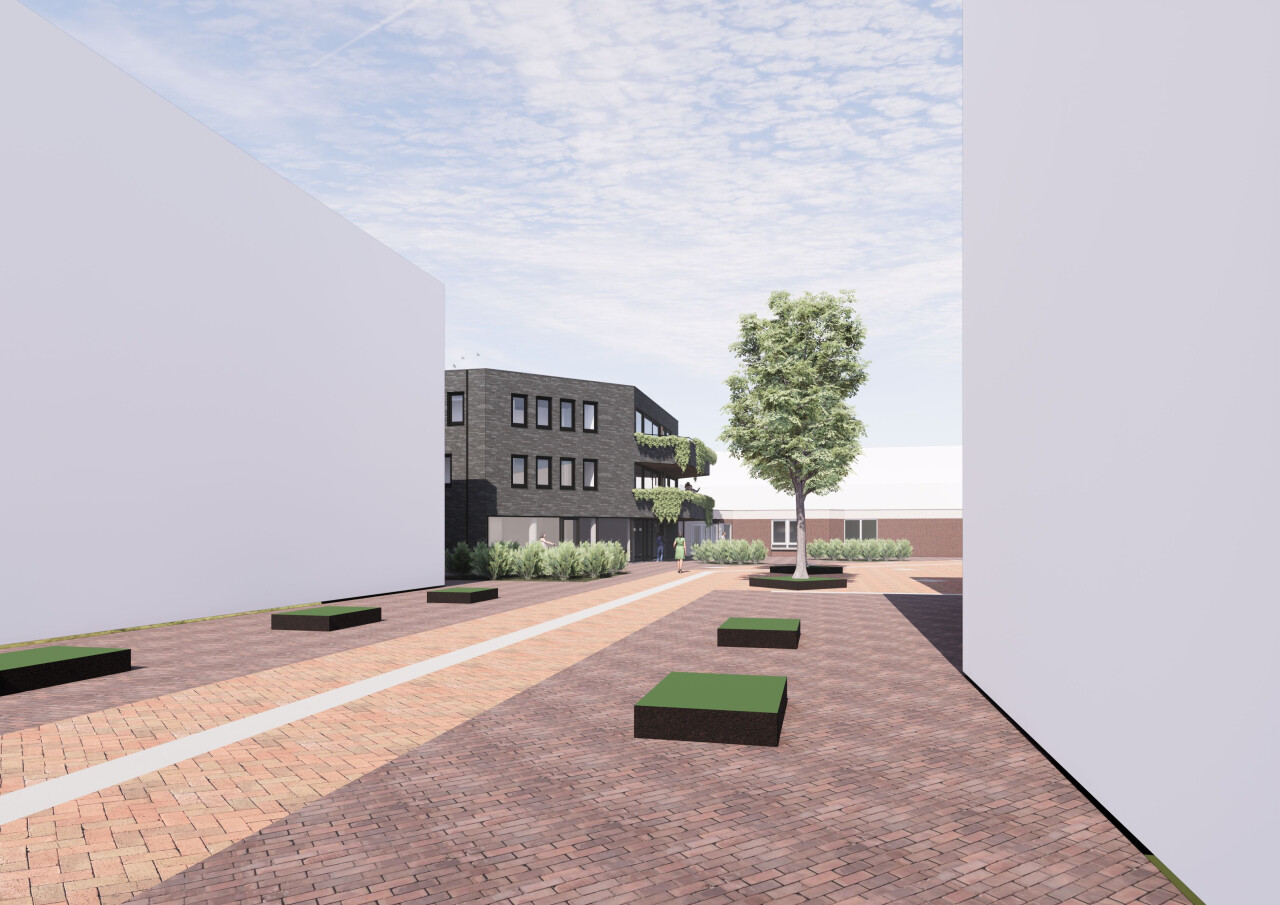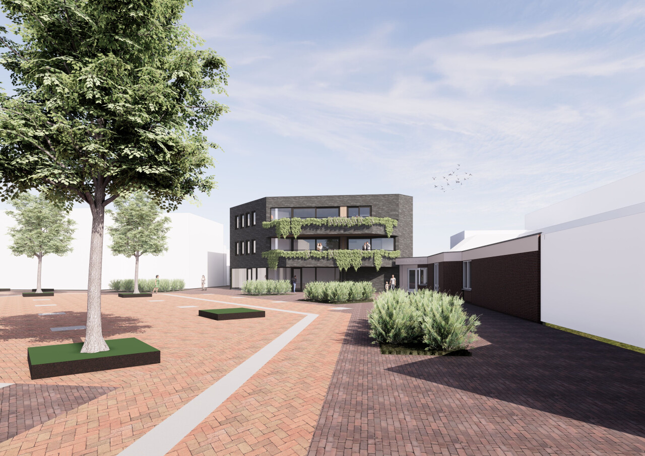 Aan het plein transformeert DLE Bouwbedrijf De Stapperij tot een toekomstbestendige woon- en winkelbestemming. Het project bevindt zich momenteel in de voorbereidingsfase, waarbij de afstemming met de gemeente bijna volledig is afgerond.
